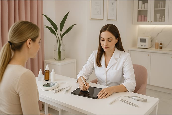 Kosmetolog patrzy na skórę holistycznie – ocenia jej koloryt, napięcie, typ cery, ale także wypytuje o styl życia, dietę, nawyki pielęgnacyjne. Dzięki temu może zaproponować całościowy plan poprawy kondycji skóry.